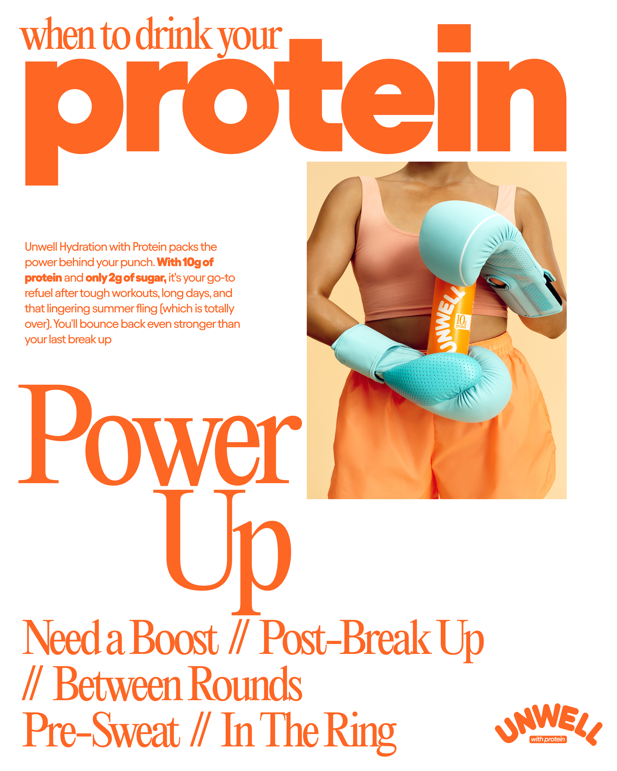 We led creative DIRECTION, ART DIRECTION, AND DESIGN EXECUTION for Unwell’s first functional extension beyond hydration—Unwell Hydration with Protein. The campaign reimagined protein through a glossy, magazine-inspired lens—turning a post-workout drink into a cultural moment. From cover-style key art and cheeky headlines to bold OOH, digital, and influencer rollout, the launch positioned protein as light, juicy, and unapologetically Unwell.
